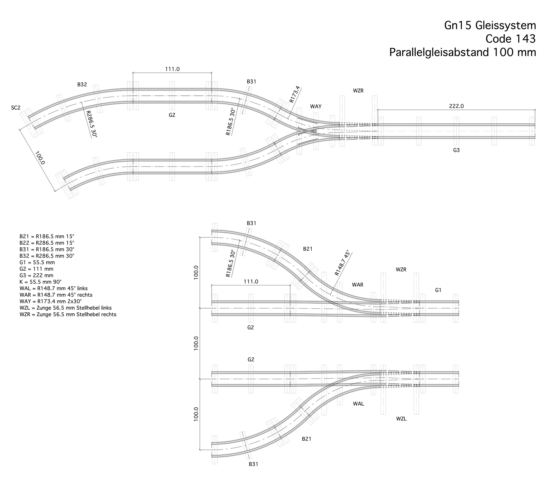Alle Gleise sind kompatibel zu den bisherigen Gn15-Gleiselementen.
