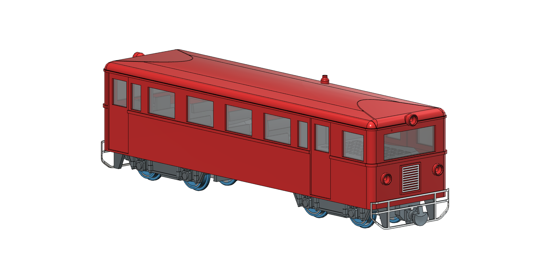 Wie beim Vorbild werden beide Achsen eines Drehgestells angetrieben, das zweite Drehgestell wird zur zusätzlichen Stromabnahme heran gezogen. Mit NEM 651 Schnittstelle. Die Laternen sind zur Aufnahme von SMD LEDs vorbereitet. Das Modell stellt die Ausführung nach dem zweiten Umbau 1966 dar. Werden die Stirnfenster mit jeweils 2 schmalen Polystyrol-Streifen unterteilt, kann auch die Version nach dem ersten Umbau 1950 aufgebaut werden. Kühlergrill, Kuhfänger, Griffstangen und Scheibenwischer aus geätztem Neusilber liegen bei.